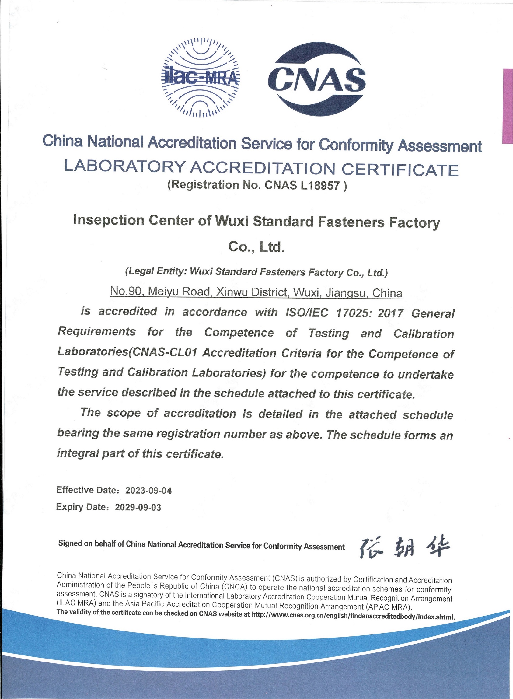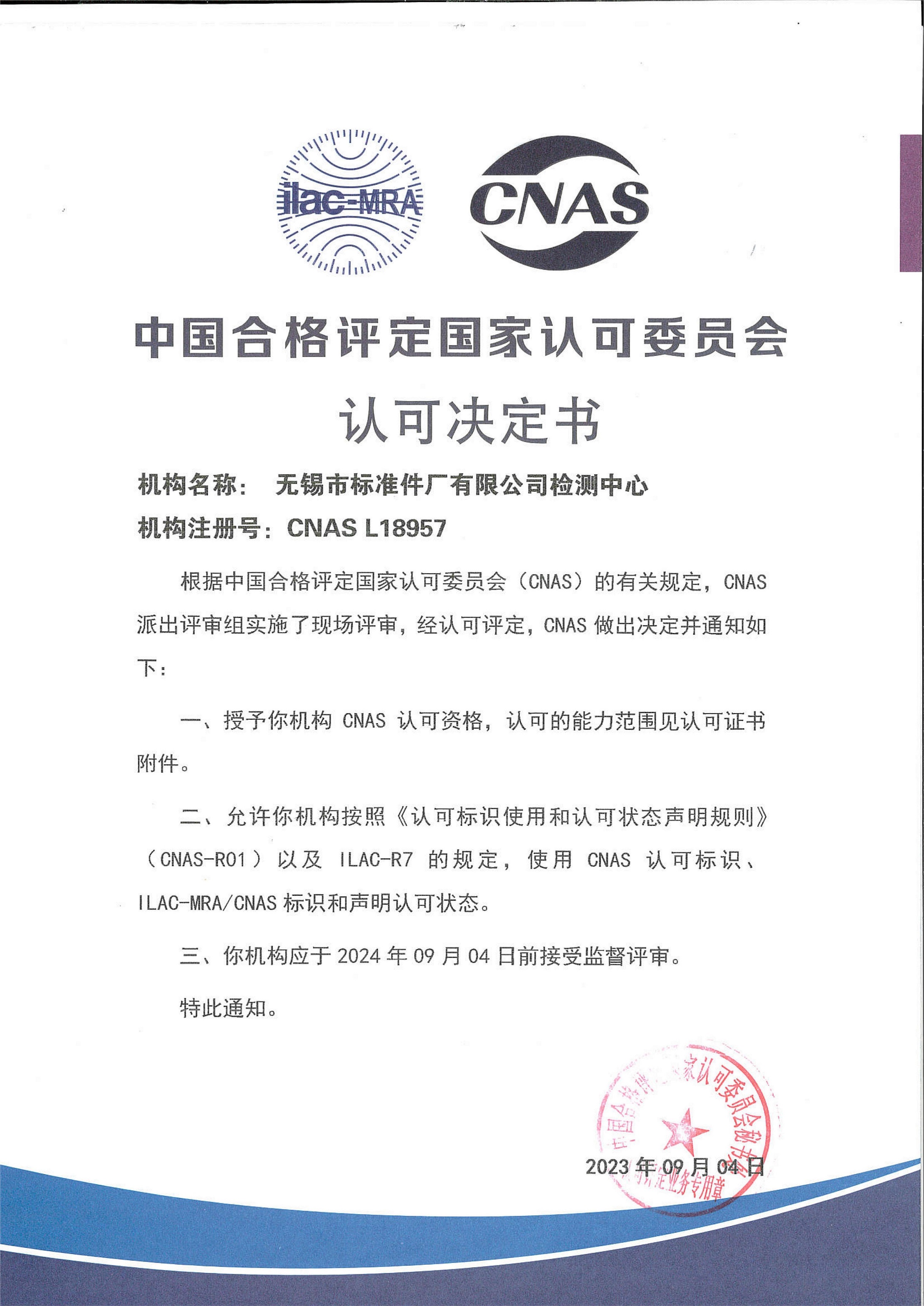 CNAS 实验室认可证书